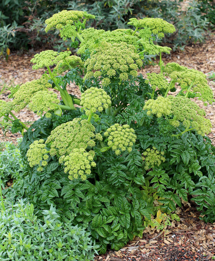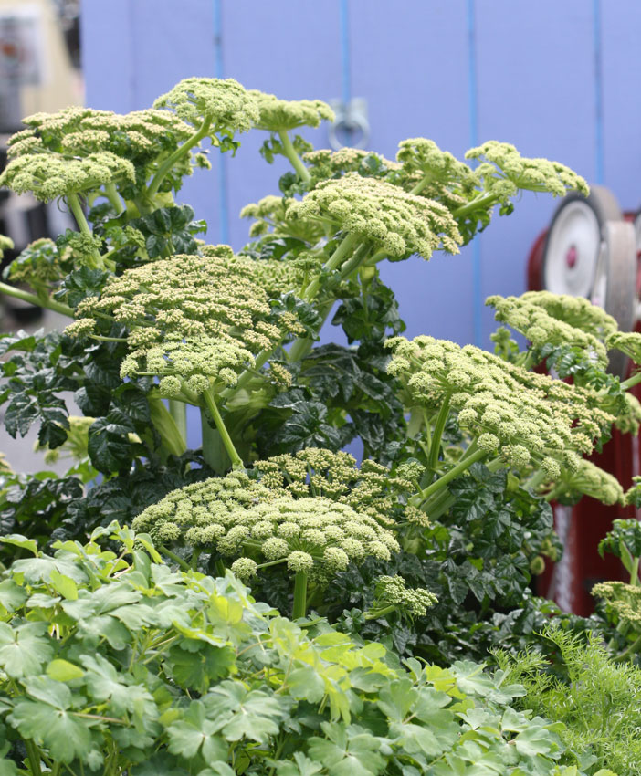 Elképesztő fényes leveleivel, magas termetével, 12 cm átmérőjű krémfehér, illatos virágaival mindenkit megtorpanásra késztet ez a látványos Angelica vagy angyalgyökér. Ha kedveli a helyét, magról is szaporodik.