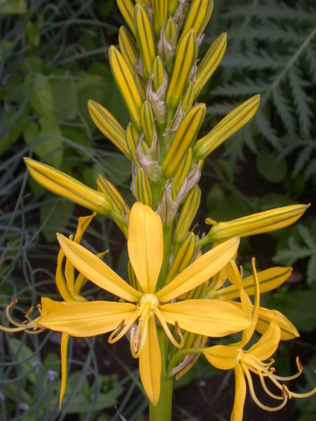 Májustól júliusig virágzik. Gyertyára emlékeztető szárán vannak fehér virágai. Termése rekeszekre hasadó, tojásdad tok.