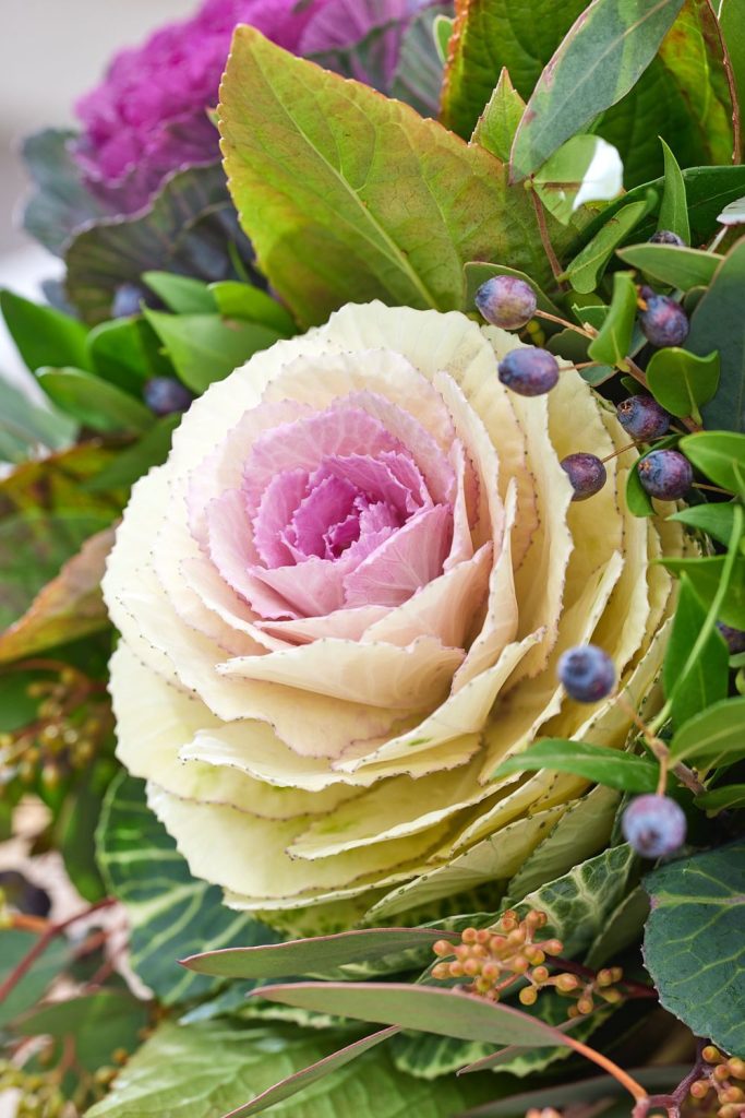 Kora tavaszi és késő őszi csokrok exotikus színfoltja a díszkáposzta. Nagy méretű virágládában pompás összeültetéseket, kompozíciókat alkothatunk belőle.