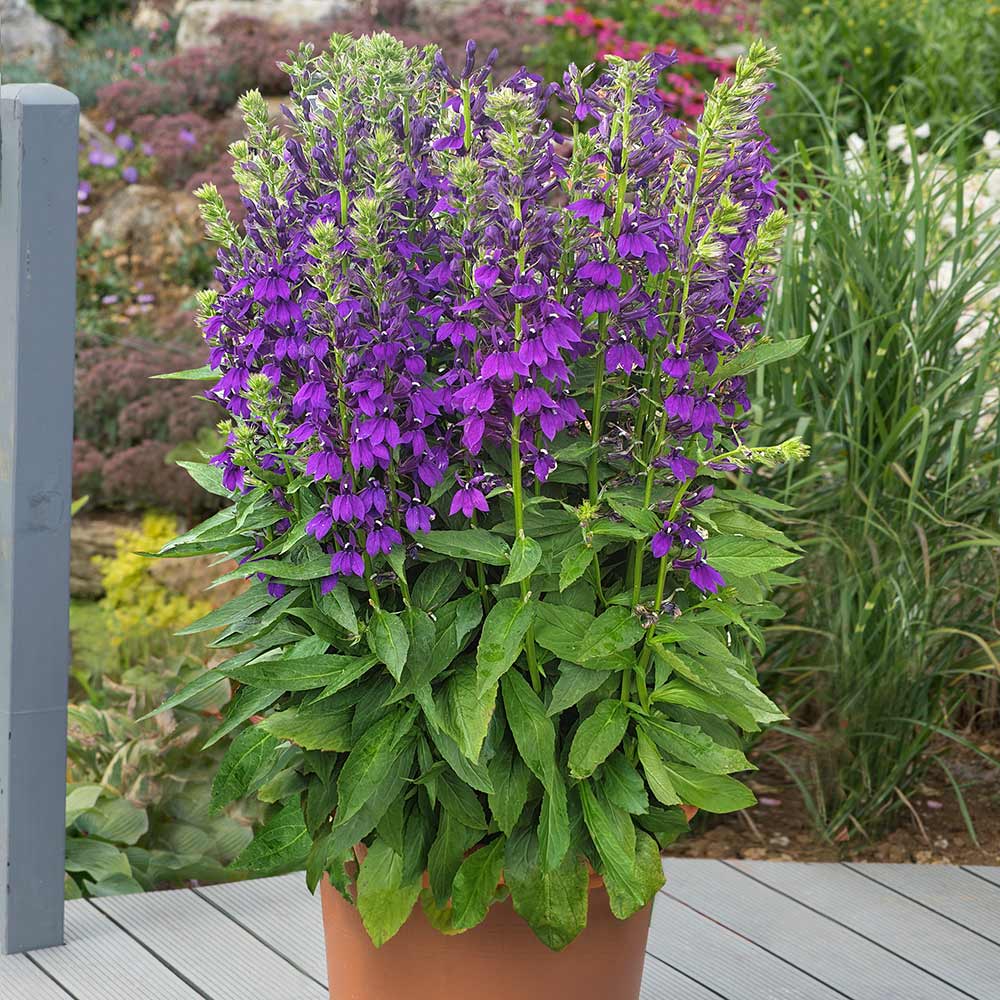 Évelő lobélia, mutatós mélylila virágokkal.